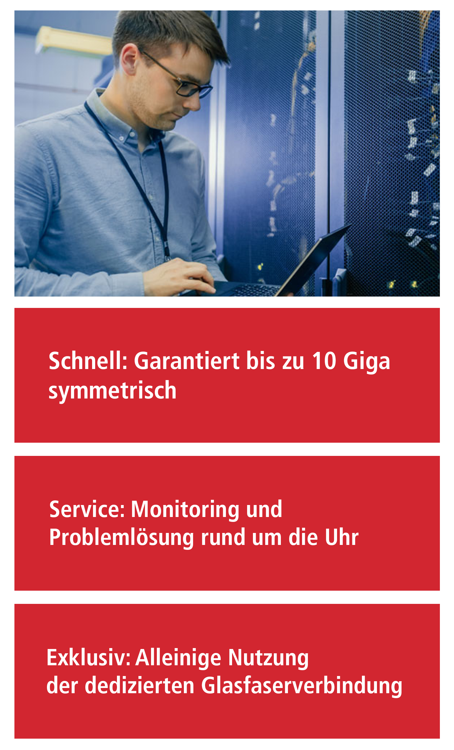 Für exklusive und selbstverwaltete Glasfaserverbindungen mit maximaler Flexibilität und Kontrolle über die Netzwerkverbindung.
